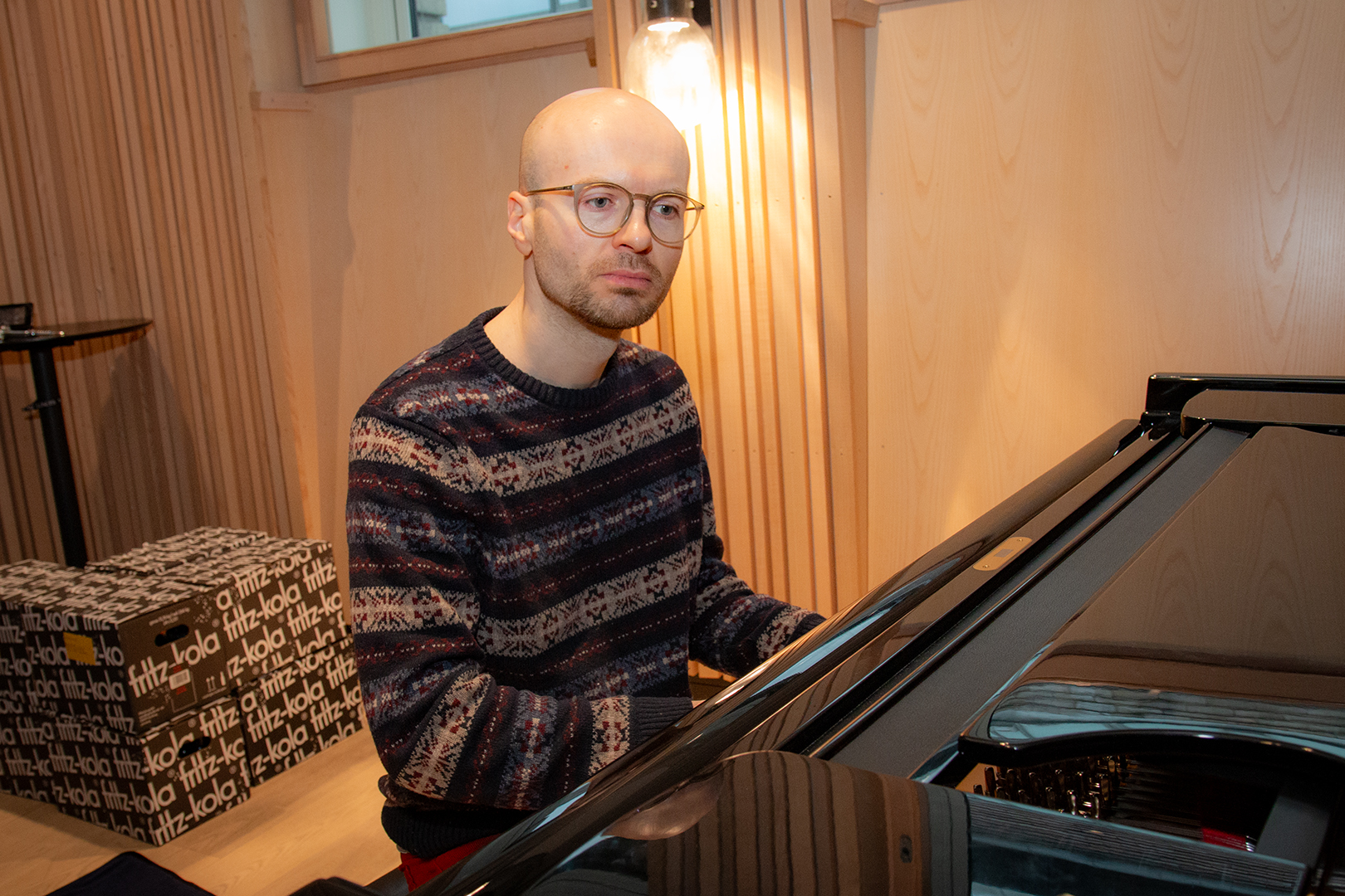 Nå begynner musikerne og komme inn. Én skal bare gi en beskjed til komponisten, en annen venter ute, mens pianist Bojan Marjanovic spør pent om han kan få komme inn å forberede seg litt. Selvsagt.